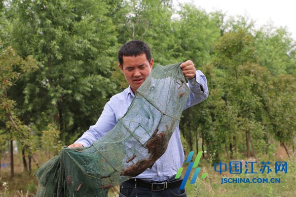 在姜扣勇的鱼虾养殖塘口,他介绍说,目前养殖规模不大,处在尝试阶段,东边这个塘是混养鱼塘,15亩,主养鲫鱼,年纯收入2万多元;西边这个是虾塘,6亩,年纯收入1万多元。