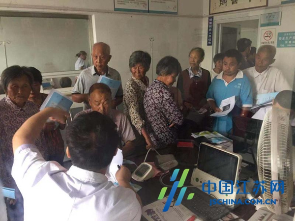 中国江苏网9月25日盐城讯 “村医生定期上门给我们健康检查和指导,卫生院每年又为我们进行一次免费体检,我们的健康有了保障。”日前,在阜宁县陈集中心卫生院体检中心,前来健康体检的群众络绎不绝,各科室医生正在耐心细致的为每一位群众进行健康检查。特别是心电室和检验室门前,正在排队的群众纷纷称赞医院的各项惠民举措,老百姓得到了免费、优质的健康服务。