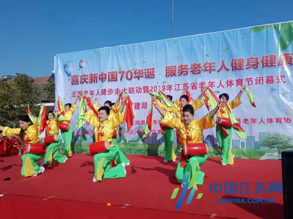中国江苏网11月13日盐城讯 11月12日,建湖县在沿河镇社区教育中心隆重举办“2019年全国老年人健步走大联动暨江苏省老年人体育节闭幕式建湖(沿河)分会场活动”。沿河镇党政领导,县体育局、县体育总会、县老年体协主要负责人,全镇15个村(居)党总、支部书记与老年健身队代表,镇老年体协全体会员及项目团队骨干,共300多人参加活动。