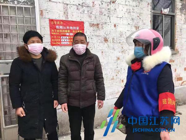 中国江苏网2月7日盐城讯 新型冠状病毒防控阻击战打响后,建湖县颜单镇网格员积极响应中央和省市县决策部署,一马当先走向防控第一线,他们不怕群众误解,不怕辛苦劳顿,坚决打赢疫情防控阻击战。