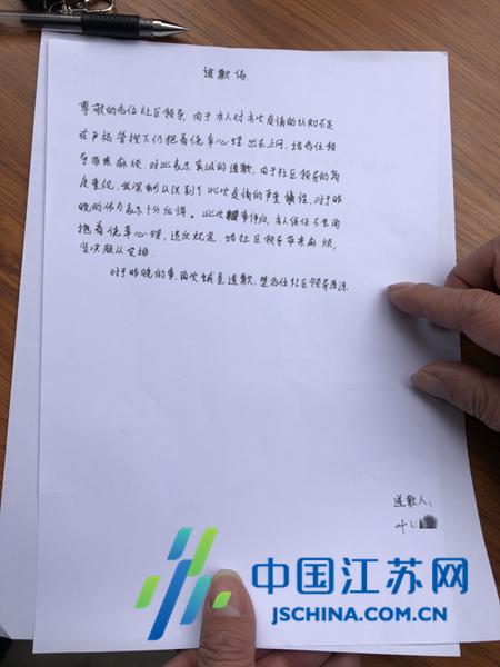 民警仔细询问叶某某的情况,确认其的确租住在小区,并对叶某某进行了体温测量,未有异常情况。民警现场给叶某某讲述当前疫情防控的形势,告诫其服从社区工作人员的管理。叶某某认识到自己的问题,主动向民警和社区工作人员承认错误。第二天,叶某某早早来到社区,给社区工作人员递交了一份连夜写的道歉信。