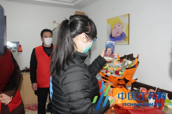 中国江苏网3月1日盐城讯 “感谢你们家庭的付出,听说今天是闫医师的生日,我们一起来为他过生日,祝他生日快乐!”2月28日下午,家住亭湖区洋中社区新纪元小区的援鄂医生闫纪强家里迎来了一群特殊的“客人”——街道社区的志愿者,他们带着鲜花和礼物前来看望和慰问这个特殊家庭。
