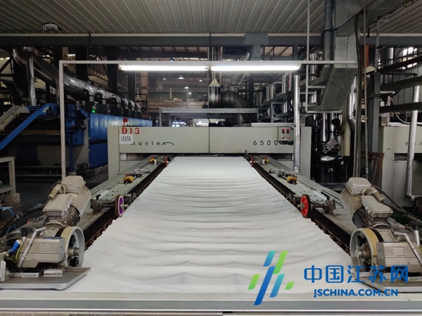 盐城福汇纺织有限公司生产厂长畅行军说:“现在我们生产,因为自动化程度比较高,每个员工负责两到三台设备,基本上把人与人之间的距离拉得比较宽,对防疫的话是比较有好处的。”