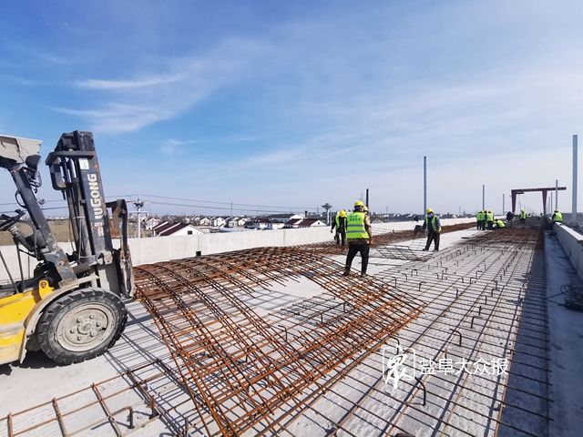 3月4日下午,记者来到位于东台市富安镇富北村境内的盐通铁路建设工地看到,工人们正在紧张地忙碌着。“这里正在进行的是盐通铁路全线无砟轨道首件段施工,长约2公里的建设就像‘试验田’,建好通过验收后将在全线进行推广。”中铁北京工程局盐通铁路工程指挥部一分部党支部书记李勇军说。