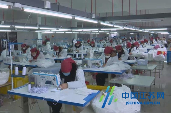 中国江苏网3月13日盐城讯 “厂里通知上班时,你不知道我有多高兴!家里上有老、下有小,经济压力大,我不能没有这份工作。”3月13日,盐城市滨海县东坎街道会农村低收入农户汪虹艳,正在东坎产业园内的卓杰服饰有限公司与工友一起赶制一批外贸服装,虽然戴着口罩,依然能感觉到笑容洋溢在她脸上。