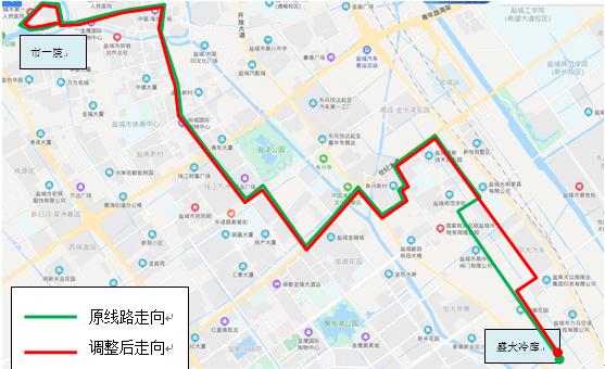 21路原走向:先锋国际广场、建军西路、毓龙路、小海路、建军路、迎宾路、东进路、人民路、世纪大道、开放大道、商业街、兴业路、新河路、世纪大道、新园路、新都路、文港路、盛大冷库,拟调整为:先锋国际广场、建军西路、毓龙路、小海路、建军路、迎宾路、东进路、人民路、世纪大道、开放大道、商业街、兴业路、新河路、世纪大道、新园路、盐渎路、文港路、盛大冷库。