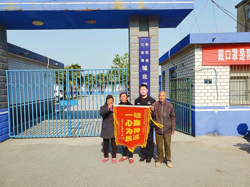盐城晚报讯昨天下午,射阳县合德镇下圩居委会村民将一面书写“破案神速,一心为民”的锦旗,送至城北派出所民警手中,感谢该所民警帮他们抓到盗窃者,及时挽回损失。
