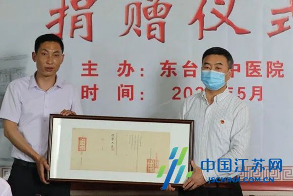 倡议发出后,徐健、蒋伟龙、孙林春、吉家林、左志春等东台市医学、历史文物收藏研究领域知名人士和市中医院医护人员积极踊跃参与,先后捐赠诊疗器具、中药标本、原版照片、典籍、医书、医案、史料、音像制品等珍贵藏品数百件。仪式上,院方与捐赠人签订捐赠协议,并为捐赠人颁发证书。