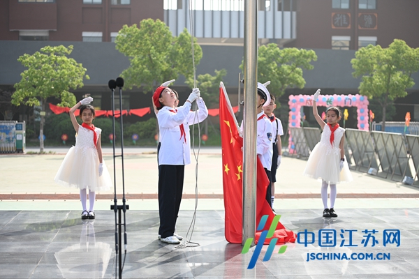 伴随着雄壮的国歌声,五星红旗冉冉升起,在生机勃勃的仲夏之季,让国旗见证他们的成长。