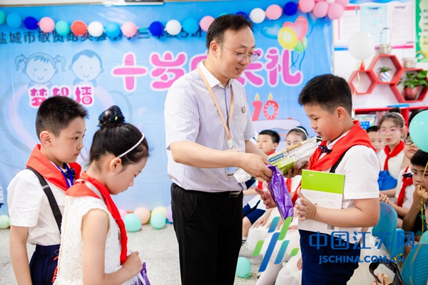 中国江苏网6月9日盐城讯 初夏暖阳,清风吹拂,笑语盈盈。孩子们无比激动,又无比幸福,因为今天是他们共同的十岁生日。