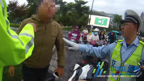 正在执勤的盐城市公安局交警六大队民警王文祥看到后,立即拦截了这辆逆行电动车,并叫车上男子下来接受检查。没料到,小伙子一脸不高兴,坚称自己没有违法。