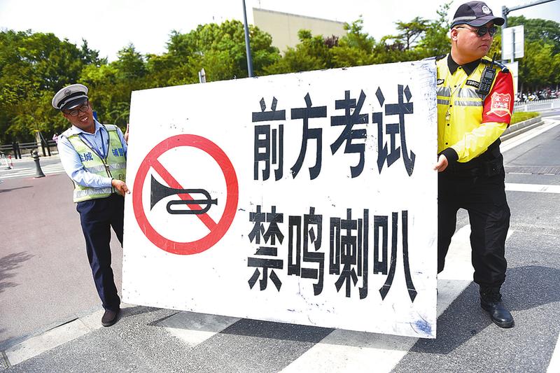 “我们今天增设了9套禁止鸣笛标志牌、6套即停即走标志牌。”市公安局交警支队六大队二中队中队长征伟告诉记者,在考点南门和西门两个入口处,交警部门均安排了三警三辅共6名警力,专门负责考点门口交通秩序,并设置四人四车的2个机动组负责巡逻管控。