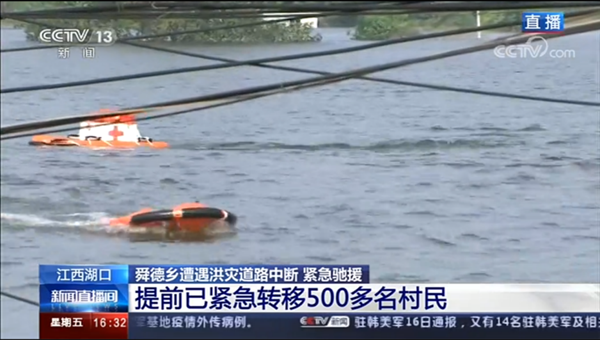 云洲盐城公司出产的“海豚1号”水面救生机器人,已在7月初就随抗洪防汛抢险队伍奋战在一线,从江西九江到鄱阳湖,再到上饶余干县,一直跟随抗洪抢险队伍,成功协助了7月20日江西上饶余干县某堤坝防汛险情等多个事故应急处置。在7月17日湖口舜德乡随队紧急驰援转移受灾群众时,央视新闻重点关注报道。