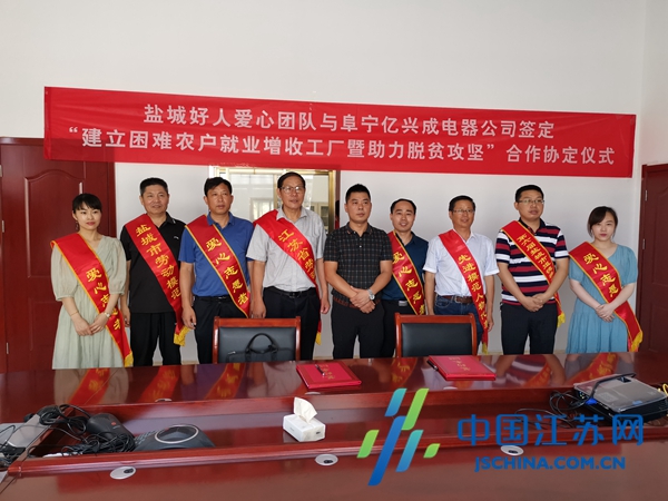 中国江苏网7月25日盐城讯 7月25日,江苏好人、省劳模、盐城市文明创建巡访团团长肖兆玉分别与江苏润固环保科技公司、阜宁亿兴成电器公司厂区负责人签定“建立困难农户就业增收工厂暨助力脱贫攻坚”合作协定,并在两厂建立“脱贫增收进厂就业人员培训基地”。标志着好人助力决战决胜,脱贫攻坚奔小康实践活动深入推进。