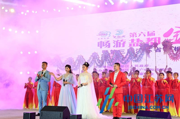 中国江苏网8月19日盐城讯 寻梦金秋,情醉国粹。8月18日晚,由盐都区人民政府主办,盐都区文化和广电旅游局,大纵湖旅游度假区联合承办,盐城市淮剧团、盐都区文化馆、盐都区群众文化艺术馆共同演出的2020第六届“畅游盐都金秋行”正式拉开帷幕。本次金秋行邀请了十位京剧、昆剧、越剧、沪剧、黄梅戏、淮剧等具有代表性剧种的中国戏剧梅花奖得主与著名相声表演艺术家进行联合演出。通过老一辈艺术家们的倾情演绎,将戏剧的文学性、思想性、人文性淋漓尽致地传递给在场的每一位观众,同时为艺术创作者提供了一个展示宣扬戏剧魅力的平台。