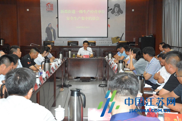 中国江苏网8月27日盐城讯 为推动企业安全生产主体责任落实,近日,盐南高新区新都街道组织重点安全管理单位安全生产工作集中约谈会,传达省、市、区安委会相关会议精神,研判辖区目前安全生产工作形势,并部署下一阶段工作任务。新都街道主要领导、分管负责人、20家安全监管重点企业主要负责人参加会议。