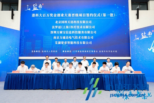 推介会后,省生产力促进中心、省科技情报分别与盐南高新区签订战略合作协议。盐南高新区分别与在香港科技大学百万奖金创业大赛中晋级总决赛的10个项目、“十城十主题”系列招商活动中达成合作意向的重点科技项目进行集中签约。众多项目的正式签落地,为西伏河科创走廊再添“生力军”。