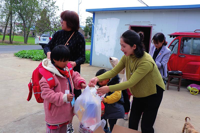 10月20日,盐城师范学院机关党委“爱心妈妈团”的6名代表来到响水县张集中心社区港湾村,开展“携手暖童心齐心筑未来”关爱留守儿童主题党日活动,向孩子们赠送学习用品。
