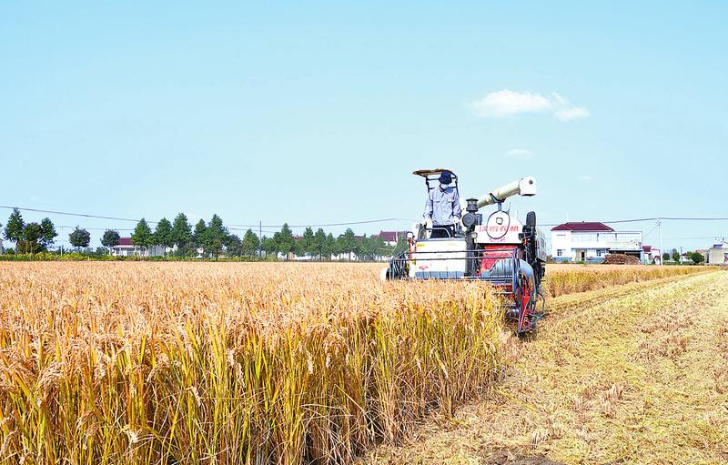 10月30日,亭湖区五星街道五星村承包盐东镇新建村的1100余亩水稻进入收割期,这是五星村首次种植精品水稻,从水稻烘干到仓储、出米一条龙生产。