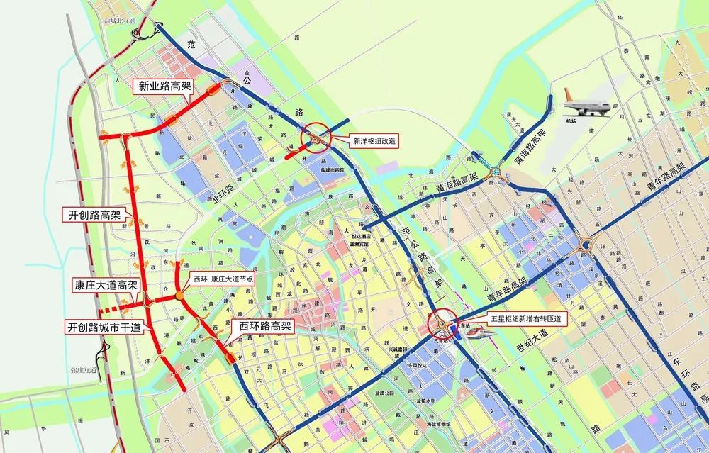 城北片区快速路网提升工程包括新建新业路高架、开创路北延、西环路高架北延、青年路高架西延、新建康庄大道高架、北环枢纽互通改造等6个子项。
