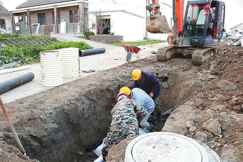 近期,盐南高新区伍佑街道加快推进高速圈生态走廊农村生活污水收集处理工程建设,对黄巷、构港等6个村(居)2700多户农户的生活污水进行收集处理,生活污水收集处理覆盖率达到100%、污水处理排放达标率100%,提升农村生态环境。图为该街道黄巷村生活污水收集处理工程施工现场。