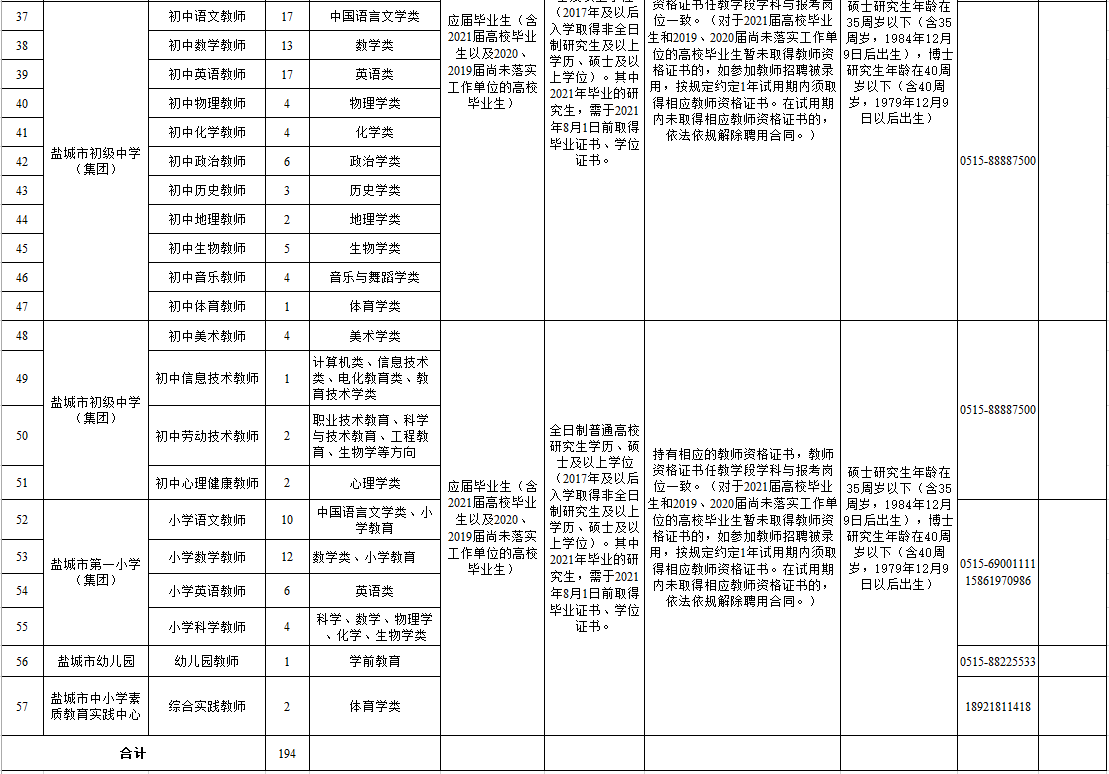 (特别提醒:1.面试地点另行通知。2.每场招聘结束后将在盐城教育网及时公布剩余岗位情况,请应聘人员及时关注。)