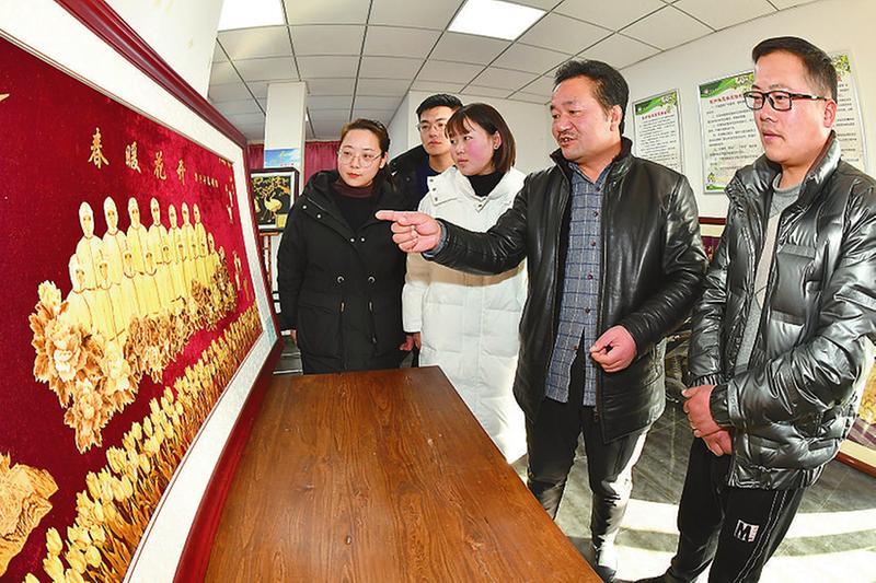1月30日下午,大丰区大中街道恒北村一间普通的工作室内,吴永龙正在教村民们制作麦秆画。3年前,吴永龙搬到恒北村,成立自己的工作室。在他的指导和带领下,越来越多的年轻人加入制作麦秆画的队伍。工作室累计义务培训30多名村民,既培养了村民们的兴趣,也提高了他们的收入。作为我省首批乡土人才“三带”能手,吴永龙说,“别人把它当作兴趣来做,我是把兴趣做成了事业。”他希望在这个领域能够见到更多的新鲜面孔,带来更多与众不同的新鲜作品。