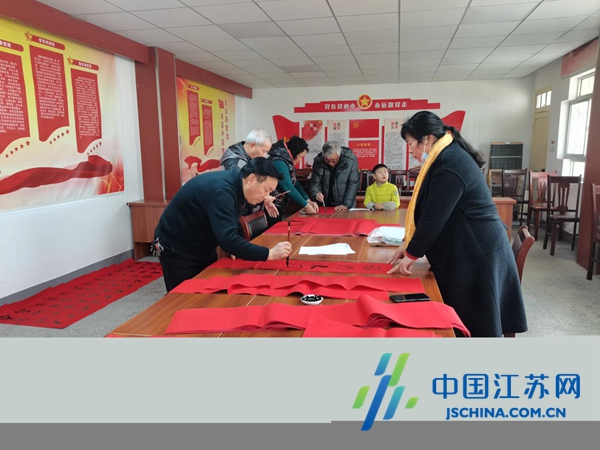 中国江苏网2月9日盐城讯 “千门万户曈曈日,总把新桃换旧符。”春节前夕,大丰区刘庄镇组织本镇书画协会会员开展了写春联活动,丰富群众精神文化生活,营造喜庆祥和的欢乐氛围。