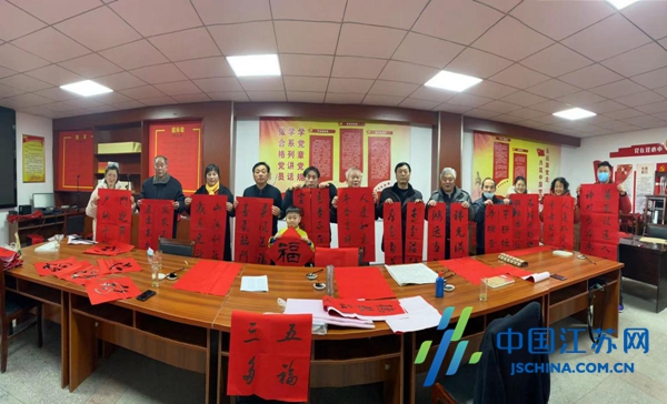 镇书画协会会员现场共为群众书写400多副春联和1000多个福字。镇党委结合今年冬训送温暖活动,及时组织志愿者将所有春联分发到各村居困难群众手中,为他们送去新春的祝福和党的关怀。(沈姗娜 杨好 徐松银)