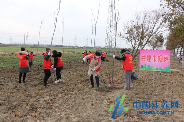 中国江苏网3月4日盐城讯 3月3日,盐都区龙冈镇“同栽幸福树·共建巾帼林”志愿活动在龙腾路洪渡段绿化景观带举行,近40名巾帼志愿者参加志愿植树活动。本次志愿活动由龙冈镇新时代文明实践所牵头,镇妇联、团委联合绿化公司、洪渡社区共同举办,是龙冈镇庆祝“三八”国际妇女节系列活动之一。