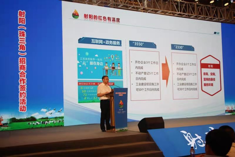 近年来,射阳积极做好“对接深圳”这篇文章,全面用好用活招商引资优惠政策,不断深化与以深圳为核心的珠三角地区产业联动发展,成功引进了大量优质企业落户射阳发展。“射阳将牢固树立亲商、重商、尊商理念,营造最优的营商环境,当好服务企业的‘店小二’,让企业家在射阳安心投资、成功创业。”射阳县委书记唐敬在致辞中表示。
