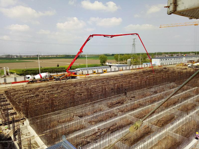 爬上塔吊,向下俯视,映入眼帘的是一排排类似网格状养鱼池的建筑,上面纵横交错地安插着无数根捆扎整齐的钢筋。数名工人根据施工图纸要求,操控混凝土工程车伸出“长臂”,不停地向由钢筋围成的模板里浇筑混凝土。“这是移动床生物膜反应池,建成之后,原水进入这里面进行一系列化学反应,从而有效净化并改善水质。”陈翠银说。