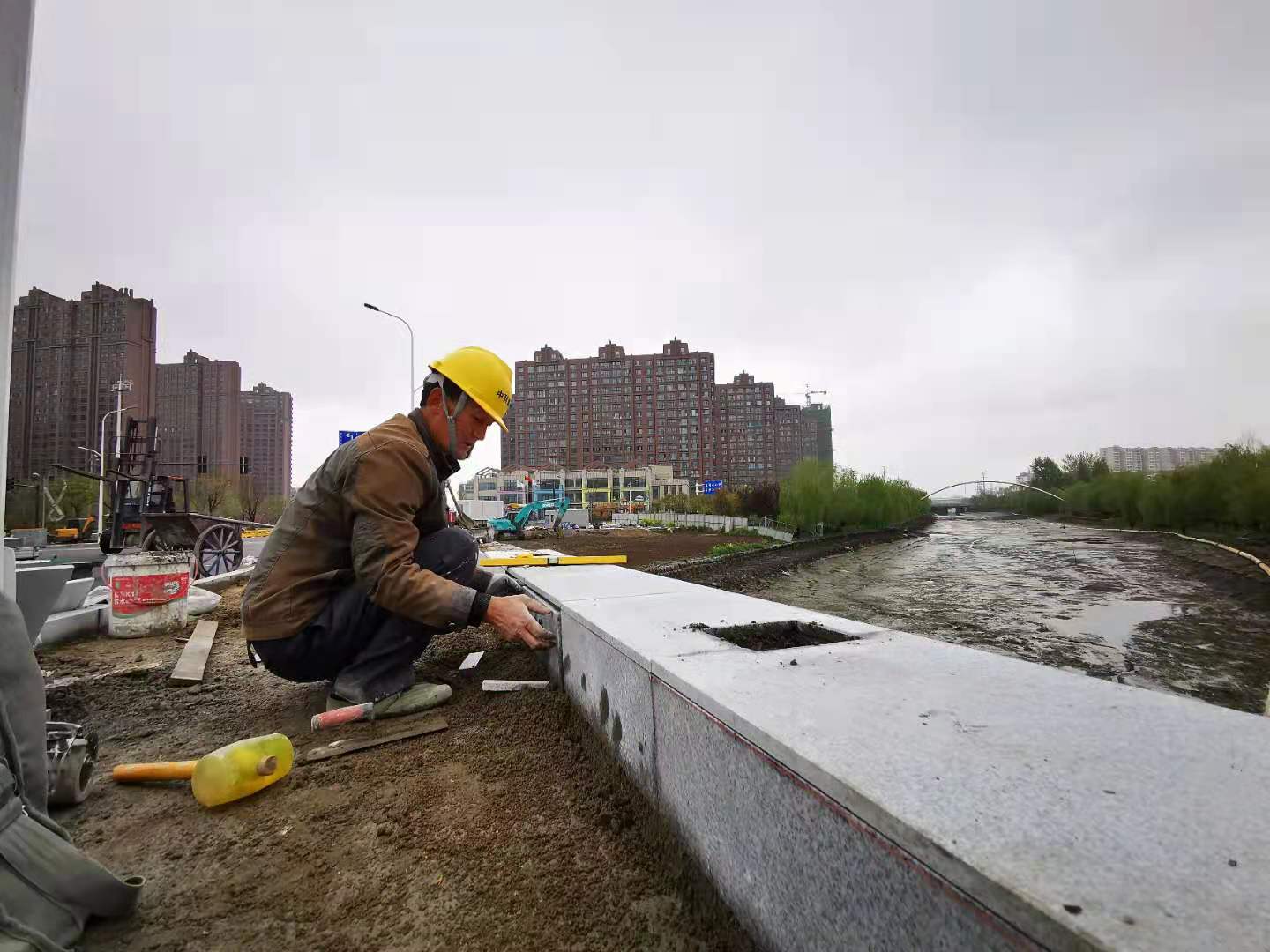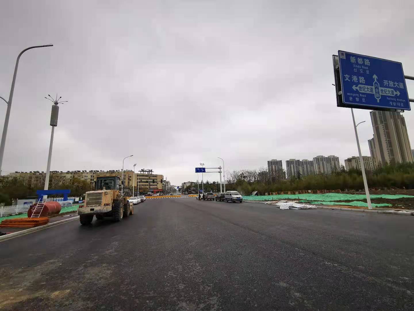施工方项目经理薛顺卿说,六合路(世纪大道-东进路段)全长800米,规划道路宽25米,两侧各有2米宽的人行道。路基处理后,增加了20厘米石灰土,又摊铺了两层水稳和沥青。为满足行洪泄洪要求,六合路跨大新河桥采取了部分暗盖梁工艺,该工艺施工复杂,难度较大,正常施工需8个月左右时间,为加快施工进度,他们组织专家多次会商,优化施工方案,加班加点,仅用了不到6个月时间即完成桥梁建设。