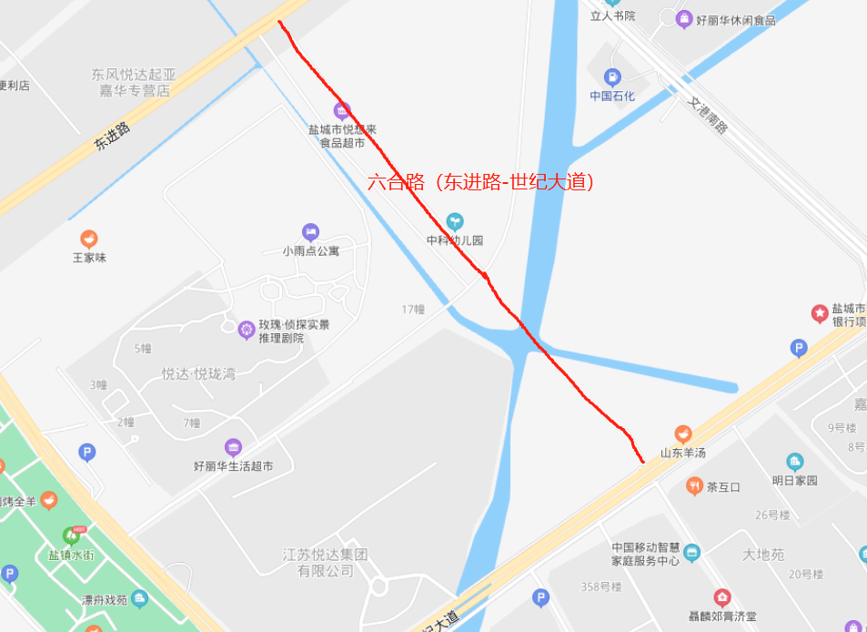 六合路(世纪大道-东进路段)原是悦珑湾小区的一条内部道路,与世纪大道并不相接。小区居民要想出行到世纪大道,必须借道开放大道或文港路。悦珑湾小区以外居民的孩子要去中科幼儿园,同样也得绕道。
