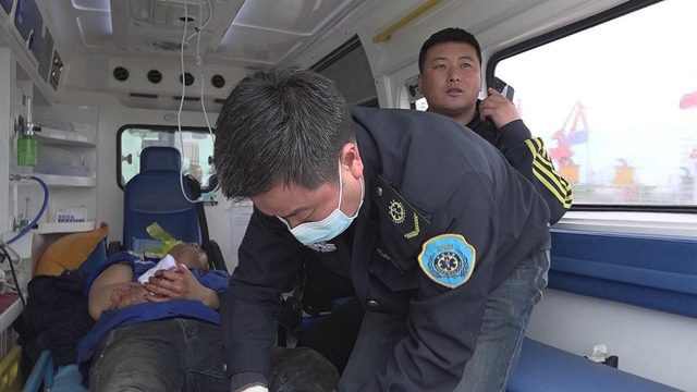接到报警后,盐城海上搜救中心连夜启动应急救援预案,滨海海事处接到搜救指令后,迅速作出应急响应,协调120救护人员,做好伤员救助和转接准备。中国海事“0616海巡艇”一路响着警报,前往出事海域。20日6:27,“0616海巡艇”接下伤员后全速返航滨海港。经过4小时的快速航行,海巡艇于10:20将伤员运达滨海海事趸船码头。此时,海事处工作人员和120急救医生已经准备就绪。重伤渔民身体情况非常虚弱,在120医生指导下,海事工作人员迅速将重伤渔民转移至120救护车送医。