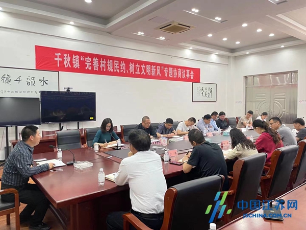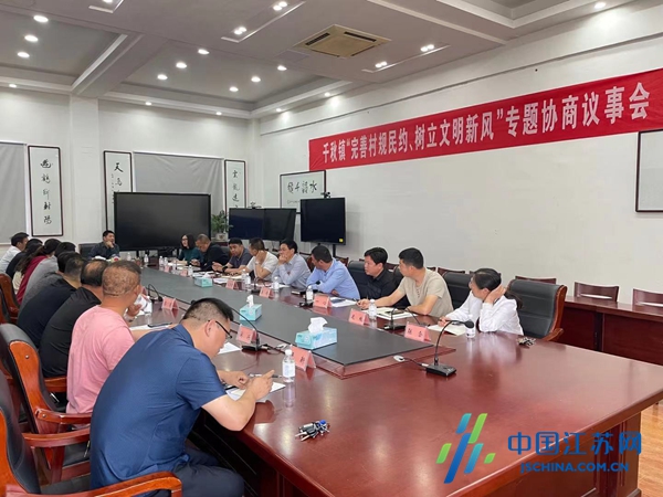 中国江苏网6月2日盐城讯 为全面推进乡村振兴,培育文明乡风,加强和改进乡村治理,5月24日,在盐城市射阳县千秋镇协商议事室,政协委员,各村居干部代表、村民代表、党员代表、乡贤代表,镇宣传办、纪检办、环管办、司法所等等相关职能部门工作人员,围绕村规民约开展协商对话。
