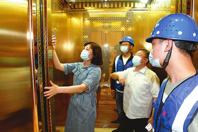 市市场监管局特设处工作人员检查食宿点电梯情况,为高考安全保驾护航。记者 周晨阳 摄