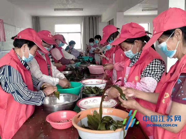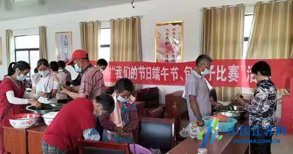 中国江苏网6月11日盐城讯 6月8日,在一年一度的中国传统节日端午节来临之际,阜宁县东沟镇在全镇19个村居综合文化服务中心举办首届民俗文化节系列活动“我们的节日端午节”包粽子比赛,300多名村居民参加。