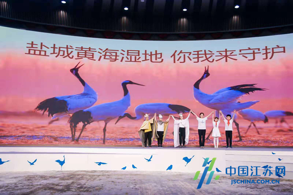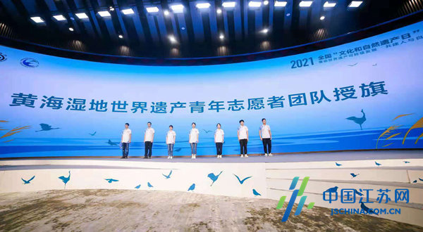 盐城市湿地和世界自然遗产保护管理中心主任吴其江发布了《世界自然遗产可持续发展盐城倡议》,同时,来自盐城东台、大丰、射阳、亭湖、建湖、盐都、阜宁的7位湿地保护青年志愿服务队代表们也宣读了《湿地保护青年宣言》,并进行了志愿服务队授旗。