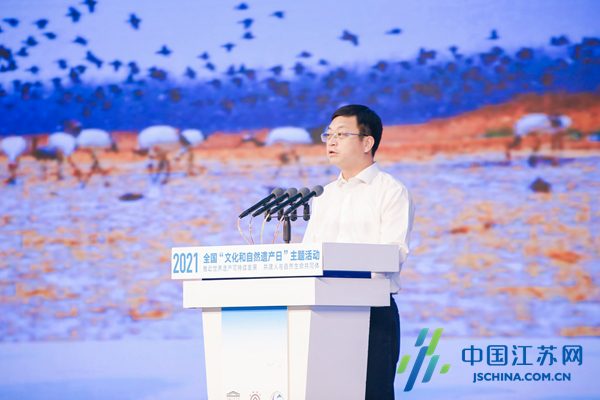 中国江苏网6月12日盐城讯(记者 程光)“我们期待通过这次活动,探寻世遗保护与经济发展‘最优解’,为区域绿色转型发展、高质量发展提供有力的理论支撑和智力支持。我们期待通过这次活动,以黄海湿地为切入点,探索世界自然遗产可持续发展路径,构建山水林田湖草生命共同体,推动黄海湿地成为‘共建共享、永续利用’的和谐遗产地,为建设美丽中国和全球生态治理贡献更多的盐城力量。”今天上午,在2021全国“文化和自然遗产日”主题活动上,盐城市委书记、市人大常委会主任戴源的一席话引起与会嘉宾的强烈共鸣。