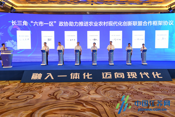 围绕“长三角一体化与农业农村现代化”主题开展研讨、交流与合作,是此次会议的一大亮点。中央农办、农业农村部乡村振兴专家咨询委委员、国务院参事室特约研究员尹成杰应邀作专题讲座,各地政协委员和农业农村方面专家提供调研文章21篇,7人作发言。会上签署了《长三角“六市一区”政协助力推进农业农村现代化创新联盟合作框架协议》,将重点助推市场开放、乡村产业、人才科技等合作。经过前期洽谈,“六市一区”在会上签订了12个现代农业项目合作协议。