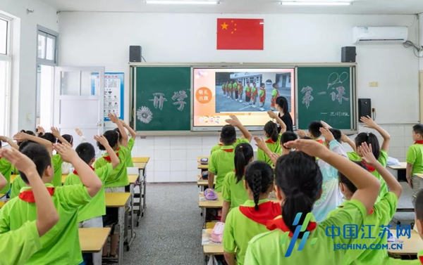 中国江苏网9月2日盐城讯 昨天是秋季学期正式开学的第一天,盐城市滨海县广大中小学生带着喜悦的心情走进校园,以饱满的热情投入到新学期学习生活中。该县各学校更是开展了主题鲜明的开学第一课教育活动,引导广大学生树立榜样,砥砺前行。