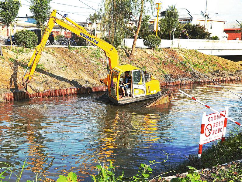 大丰区草堰镇突出水域保护、岸线管理,不断提升全镇水环境。今年以来,该镇已完成七里港河等4条高标准生态河道建设任务,高质量整治12条村庄河道,全镇7条区级、16条镇级、82条村级河道达到水清、岸绿、景美的要求。图为该镇组织机械对三元村境内的河道进行河坡刷新。