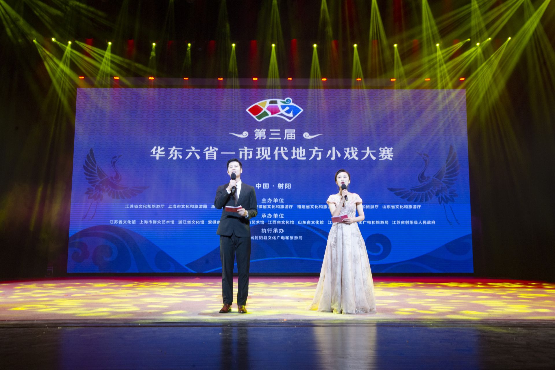 【导读】10月18日晚上,射阳县杂技艺术中心灯光璀璨,随着一声锣响,第三届“华东六省一市现代地方小戏大赛”正式开幕,当晚的江苏专场先后有柳琴小戏《未见面的新娘》、淮海戏《拽耳朵》、淮剧小戏《船娘》等八台小戏登台角逐。