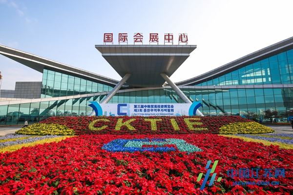 展会设有中韩产业园形象主题展区、中韩贸易展区、中韩投资展区等3个展区,展示规模近3万平方米,设置展位105个,参展企业121家,与前两届博览会相比,在展出形式、龙头企业、产业类别、供需合作、文化交流等方面又有新提升,并首次举办线上中韩贸易投资博览会,通过“线上+线下”创新办会模式,做到全年全时段线上展览。(供图 蔡玉成 徐洲)