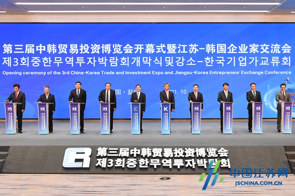中国江苏网10月29日盐城讯(记者 程光 通讯员 孔大勇)金秋时节,一场跨越山海的盛会再度拉开帷幕。10月29日上午,以“畅通产业循环、开放合作共赢”为主题的第三届中韩贸易投资博览会开幕式暨江苏-韩国企业家交流会在盐城国际会展中心举行,中韩日等国千余名领导嘉宾、专家学者、商界巨子齐聚“东方湿地、黄海明珠”——盐城,共襄金秋盛会,共谋合作发展。