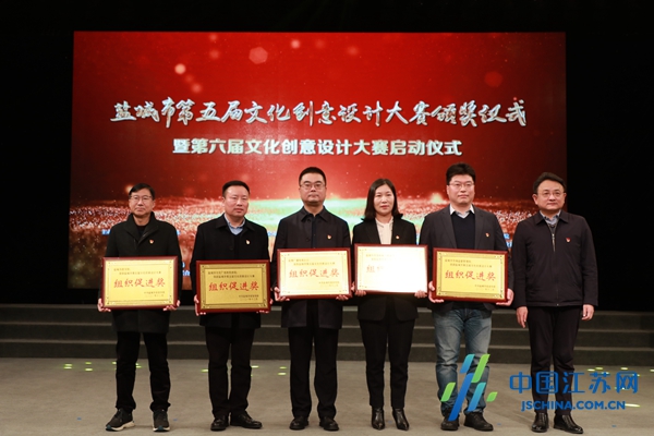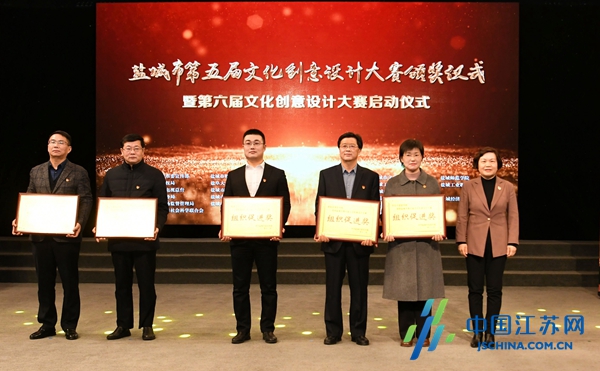 中国江苏网12月29日盐城讯 12月29日上午,盐城市举办第五届文化创意设计大赛颁奖典礼暨优秀作品展。盐城市委常委、宣传部部长陈卫红,副市长唐敬出席活动,为第五届文创大赛组织促进奖获奖单位颁奖并共同按下第六届大赛启动按钮。