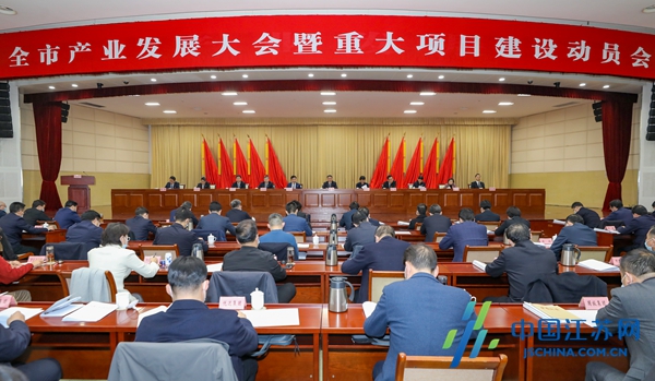 中国江苏网1月7日盐城讯 击鼓催征开新局,奋楫扬帆启新程。1月6日下午,盐城市召开全市产业发展大会暨重大项目建设动员会,深入贯彻党的十九届六中全会、中央和省、市委经济工作会议精神,全面落实全省重大项目建设动员会部署,动员全市上下一着不让、抓早抓紧,进一步夯实实体经济根基,推动全市产业高质量发展,切实扛起“争当表率、争做示范、走在前列”光荣使命,为勇当沿海地区高质量发展排头兵、加快“强富美高”新盐城现代化建设注入强劲动能。盐城市委副书记、代市长周斌出席会议并讲话,市政协主席陈红红、市委副书记羊维达出席。