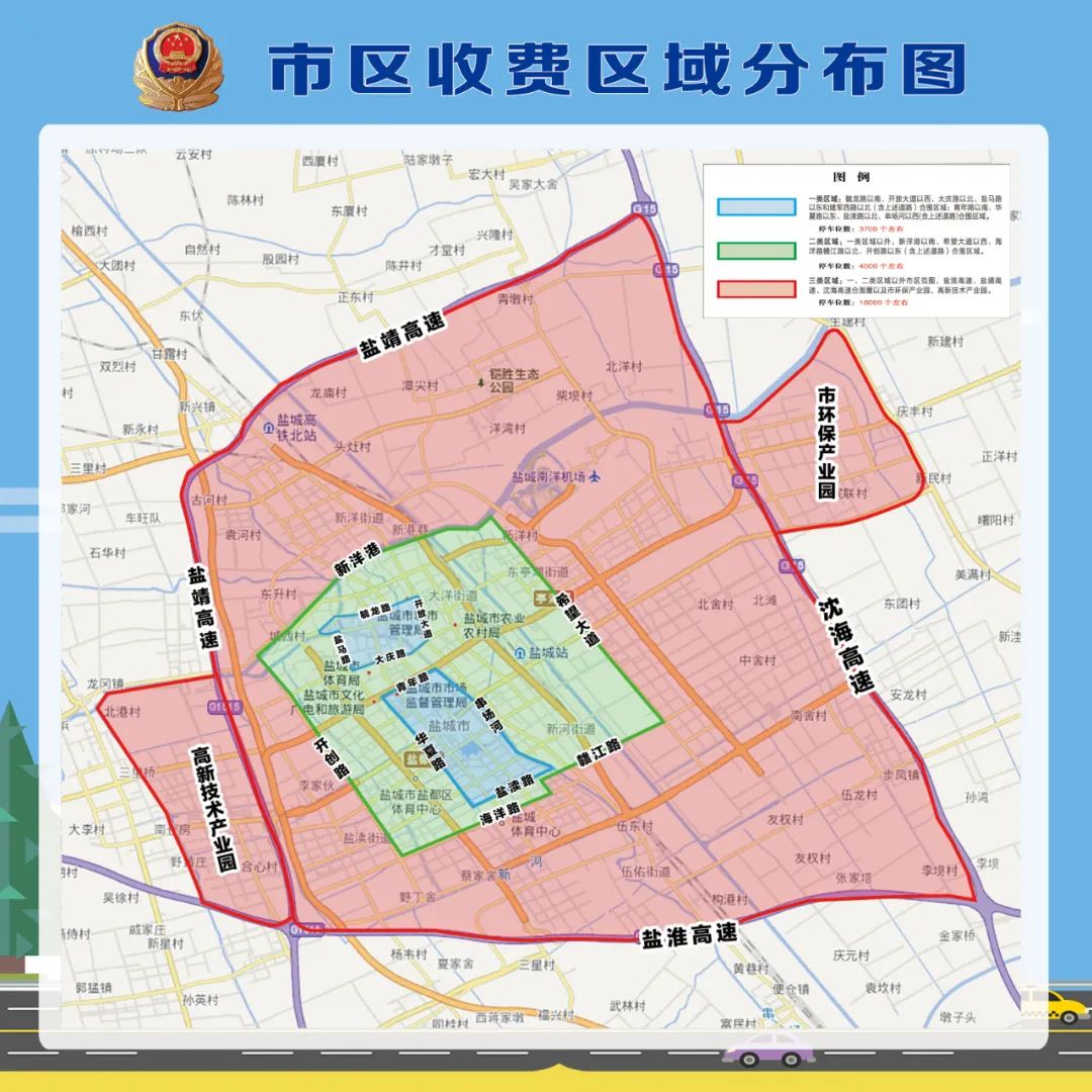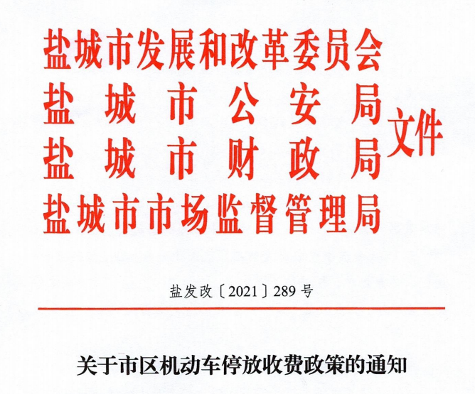 亭湖区、盐都区、盐城经济技术开发区、盐南高 新 区发改委(经发局)、公安分局、财政局、市场监管局,市区各停车场经营单位: