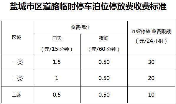 1.盐城市区道路临时停车泊位停放费收费标准